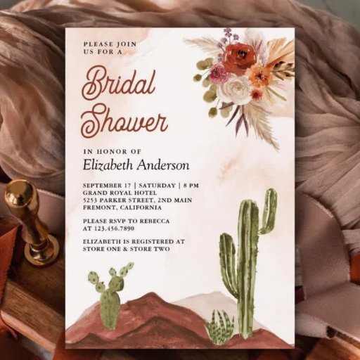 Överraska dina gäster med denna eleganta ökeninspirerade bröllopsinbjudan med en vacker akvarellskildring av en öken och rustika blommor. Lägg enkelt till dina evenemangsuppgifter i denna lättanvända mall och pryda kortet med ditt favoritfoto för att göra det till ett unikt datumkort.