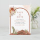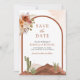 Överraska dina gäster med denna eleganta ökeninspirerade bröllopsinbjudan med en vacker akvarellskildring av en ökenlandskap och rustika blommor. Lägg enkelt till din evenemangsinformation i denna lättanvända mall och pryda kortet med ditt favoritfoto för att göra det till en unik save the date-kort.