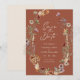 Terrakotta Blommig Spara Datum Platt Kort. Detta stilrena och eleganta spara-datum-kort har vackra handmålade akvarellblommor arrangerade som en vacker krans perfekt för vår-, sommar- eller höstbröllop. Hitta matchande föremål i Terrakotta Boho Wildflower Bröllopskollektion.
