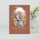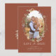 Terrakotta Boho Blommig Spara Datum. Detta stilrena och eleganta bröllops-kort för att spara datumet har vackra handmålade akvarell- blommor arrangerade som en vacker krans med ett förlovningsfoto för personlig anpassning. Baksidan har en vacker samordnad bukett med brudens och brudgummens monogram. Hitta matchande föremål i Terrakotta Boho Wildflower Bröllopskollektion.
