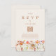 Det här boho höst-rustika vildblomma-terrakotta bröllop RSVP-bifogade kortet är det perfekta tillägget till din bröllopsinbjudan, designat för att sömlöst komplettera den bohemiska charmen i din fest. Med handmålade akvarellvildblommor i varma, höstliga nyanser av bränt orange, terrakotta, lila, gul, korall, bränd umbra, persika och mjuk rosa, ger detta kort en touch av elegans och nyckfullhet. Med en lättanvänd mall kan du enkelt anpassa RSVP-detaljerna för din speciella dag, som inkluderar antal deltagare, måltidsval och födoämnesallergier. De vackra blommorna, placerade runt en graciös båge, skapar en raffinerad men naturinspirerad estetik, medan den eleganta skrivstilstypografin lägger till en modern kontrast. Designat med originalkon