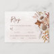 Moderna boho-stil bröllopsvarskort med måltidsalternativ, med akvarellblommor och höstlöv i jordnära toner som roströd, bränd orange och terrakotta. Perfekt val för höstbröllop.