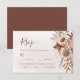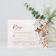 Moderna boho-stil bröllopsvarskort med måltidsalternativ, med akvarellblommor och höstlöv i jordnära toner som roströd, bränd orange och terrakotta. Perfekt val för höstbröllop.