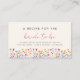 Njut av naturens skönhet med vårt Wildflower Bridal Shower Garden Share a Recipe Enclosure Card. Detta charmiga kort fungerar inte bara som en inbjudan utan inbjuder också gästerna att bidra till en kulinarisk skattkammare. Prydd med utsökta illustrationer av vilda blommor sätter det en romantisk ton för firandet. Kortet uppmuntrar deltagarna att dela med sig av sina favorit recept och skapar en personlig touch i brudens recept samling. Perfekt för en trädgårdsinspirerad bröllopsfest, detta inklusionskort tillför en lekfull och sentimental ton till evenemanget. Förhöj glädjen under tillfället med Wildflower Bridal Shower Garden Share a Recipe Enclosure Card, där kärlek blommar och recept delas i en firande av natur och äktenskap.