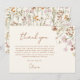 Uttryck din tacksamhet med vårt Terracotta Wildflower Bröllopsfest Tacksamt-kort. Detta vackert designade kort fångar essensen av naturens charm, med livfulla vilda blommor mot en varm terrakotta-bakgrund.