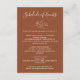 Det här minimalistiska brölloppsschemalägget har varma terrakottafärger med subtila bladaccent - perfekt för att beskriva dina helgaktiviteter, från välkomstsamkväm till avskedsbrunch. Ett stilrent val för boho-, öken- eller höstbröllop.