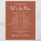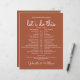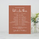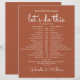Denna stilrena bröllopsschema tidslinje kan anpassas med era bröllopsdetaljer i elegant vit text på terrakotta bakgrund. Designad av Thisisnotme