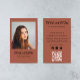 Skapa ett stilfullt och minnesvärt första intryck med detta moderna terrakotta-fotokort för företagspresentation, designat för fotografer och kreativa yrkesverksamma. Den varma jordtonen ger en trendig, elegant touch medan framsidan visar ditt porträttfoto och baksidan innehåller snyggt organiserad kontaktinformation, ikoner för sociala medier och en skannbar QR-kod för direkt åtkomst till din portfolio.