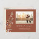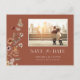 Terrakotta Foto Blommig Spara Datum Postkort. Detta stilrena & eleganta foto Spara Datum anmälningskort har vackra handmålade akvarell vilda blommor arrangerade i en vacker bukett perfekt. Hitta matchande artiklar i Terrakotta Boho Wildflower Brölloppskollektion.