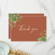 Terrakotta Grönska Blommig Elegant Skrift Tack Kort