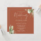 Terrakotta grönska blomster monogram fyrkantig brö inbjudningar