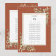 Denna eleganta grönska eukalyptusblad bord sittplatsschema har ömtåliga akvarellblad på en terrakotta bakgrund, med era gästers sittplan framtaget av en guldbård. Designad av Thisisnotme©