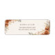 Designad i varma terrakottafärger och rika höstblommor, är denna eleganta returadressetikett perfekt för rustika, bohemiska eller utomhusbröllop. Med jordnära nyanser och minimalistisk charm ger den en mysig, romantisk känsla till dina kuvert. En vacker avslutande touch för naturinspirerade firanden med brända orange och lerkolor.