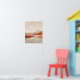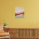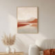 Modern minimalist väggkonst med skiktade terrakotta-klippor som ramar in en lugn kustvik. Horisontella sandiga former skapar djup och perspektiv, medan dämpade vattenfärger balanserar den varma jordpaletten. Färdig med en vävd canvas-struktur, denna abstrakta kustkonst ger värme och struktur till neutrala vardagsrum, sovrum eller modern kontorsdekoration.