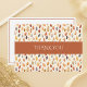 Skicka ett tack de kommer säkert att minnas med våra tacksamt-kort med höstlöv-motiv. Det fantastiska moderna akvarellmönstret med färgglada höstlöv och en rik terrakotta rektangulär bakgrund centrerad bakom "Tack" typografi. Tunn terrakotta ram och solid vit bakgrund på baksidan med utrymme för ett handskrivet meddelande. Den mångsidiga designen gör den perfekt för höftliga bröllop, tacksägelsekort eller när som helst du vill dela ett uppriktigt tack. Kombinera med vårt höstlöv-fallkuvert för att fullborda utseendet.