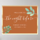 Välkomna era gäster till er repetitionsmiddag med denna eleganta terrakotta- och guldplansch. Med en modern botaniskt inspirerad design förenar den guldets rikedom med varmt terrakotta i bränt orangea nyanser. Handskriven kalligrafiskrift lägger till en personlig touch och inbjuder era gäster till en kväll av värme och firande. Perfekt för att sätta tonen för en ofölig natt där varje detalj utstrålar sofistikation och charm.