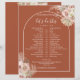 Vackra terrakotta boho blomsterliga pampas gräs vattenfarger och chic båge inramar detaljerna i ditt speciella bröllopsschema-tidslinje i stilfull typografi med era initialer på baksidan. Designad av Thisisnotme©
