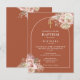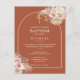 Eleganta blomsterpampasgräs vattenfarger och chic båge ramar in dina dop- eller namngivningsdetaljer i stilfull modern typografi på en boho terrakotta bakgrund. Designad av Thisisnotme©