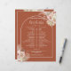 Vackra terrakotta boho blomsterliga pampasgräs vattenfarger och chic valv ramar in era speciella bröllopsschema-tidslinjens detaljer skrivna i stilfull typografi med era monogram-initialer på baksidan. Designad av Thisisnotme©