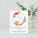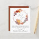 Elegant prisvärd tackkort för din baby shower med "Tack" i en stilren grå handskrift med en hjärtsvans, en rustik krans bestående av vattenfärg illustrationer av pumpor och terrakotta blommor och grönska. Anpassa ditt tackmeddelande i enkel modern typografi och lägg till dina namn i en signaturliknande handskrift.