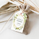 Koppla de här eleganterna botaniska märkrna till dina bröllopsfavoriter för att säga tack till gästerna i chic stil. Vita märkre har en gyllene, geometrisk gräns väv med lush vattenfärgsgrej och blommor, med "kärlek och tack" som ram och datum för namn och bröllop. All text är redigerbar för den slutliga anpassningen. Designad för att matcha vår insamling av Terrarium bröllop.