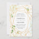 Vår Terrariumsamling ramar er bröllop-information med ett intrikat gräns av guld geometriskt inslag accentuerat med lush vattenfärgsmedels grönt botaniskt löv.