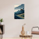 Terrasserade Fält Tryck Lugnt Landskap med Stuga (Grafisk Minimalistisk Stil)