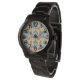Denna kvinnoklocka har en modern utformning av trianglar som skapar ett terrazzo-utseende i golv, grått, turkos, orange, guld och grönt.
