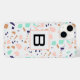 Vit bakgrund med multifärgterrazzo mönster på , mynta, beige och blå. Anpassa och lägg till ditt monogram först, brev.