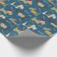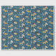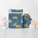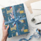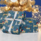 hund med julhattar och prydnadsföremål på blå bakgrund
