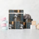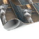 En nyfiken hund runt en vättad trädörr med varm inomhusbelysning som ger en mysigt glöd i bakgrunden