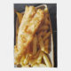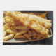 Ett foto av Fish och Chip tryckt på en tehandduk.