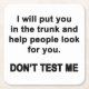 För sarkasmen älskare i oss alla. Kolla in det här med "Jag sätter dig i bagageutrymmet och hjälper folk att leta efter dig. Testa mig inte." design på kläder och presenter.