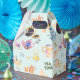 tetid mönster - te kopp och tepott i vattenfärg - ljusblå bakgrund