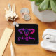 Färgstarkt Pro Choice/Abortion Ban-protestnyckelkedja har lila celestial snake uterus design med "F*ck off Texas"-text på svart bakgrund.