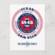 Texas, Austin, TX, Patriotic, Monogram Postcard har en cirkelformad typografi med rött, vitt och blått amerikanskt Flagga. Du kan anpassa den med ditt eget monogram som första steg och namn i mallen.