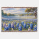 En drömlik vid utsikt av Texas bluebonnets sträcker sig över böljande kullar, badade i mjukt solljus under en klar, molnprickig himmel. Paletten lyser med livfull indigofärg, lavendel och krämiga vita blommor, satta mot gyllengrönt gräs och spridda ekträd som inramar fjärran med grace. Detta förtrollande landskap frammanar en lugn, pastoral stämning – perfekt fångar den tysta magin av våren på landsbygden. Målad i en romantisk, något impressionistisk stil, erbjuder kompositionen både djup och värme, med mjuka övergångar av ljus och färg som drar betraktaren till sig. Perfekt för de som älskar vildblommefält, sydstats charm och naturens mjuka storhet. AI-genererad