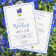 Inbjudan familj och vänner till bröllop med den här eleganten Texas Blånätsinbjudan till blommigt. Den har en nära bild av blommor och elegant med blå accenter. Anpassa genom att lägga till information om namn, datum, tid, plats och andra händelser på baksidan. Blånätets blommigt bröllop är perfekt för Texas vår och sommar bröllop.