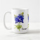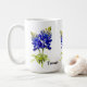 Unik mugg-design med blommorna från Blånätet i Texas mot en ren vit bakgrund. Blåblomman är Texas statsblomma. I mars och april blommar dessa vackra blommor i fält och på fribanans medianer.
