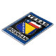 Klassiskt rutttecken stil, med texten TEXAS BOSNIAN, och flaggor i delstaten Texas och Bosnien och Hercegovina.