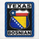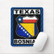 Texas Bosnian American Sign Mousemat. Klassiskt rutttecken stil, med texten TEXAS BOSNIAN, och flaggor i delstaten Texas och Bosnien och Hercegovina.