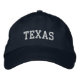 En grundläggande justerbar kap som är broderad med (anpassade) texten Texas. . Markera hatten och texten färg och stil efter eget val.