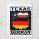 Texas Tysk utformning, i stil på en coola amerikansk vägskylt. Texten Texas Tyska ligger längst upp och grund, med flagga i delstaten Texas och flagga för Tyskland inuti vägskylten. Underbar för tysk härkomst av textilier och f.d. rostar i delstaten Lone Star.