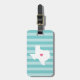 Rep ditt hemland Texas med den här söta turkos- och rosa bagagetaggen med en silhuett karta i delstaten Texas med ett rosa hjärta inuti, överlagd på en trendig-keramik med rand. Den här söta designen i trendig färg gör en underbar julstuffare eller gåva till kvinnor, tonåringar och flickor, oavsett om de bor i Texas, är ute ur staten för att få högskola eller känner sig hemlängtana eller nostalgiska för sitt hemland. Anpassa den omvända sidan med din kontaktinformation i vitt om matchande turkos.