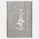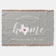 Visa lite hemstatstrots med denna söta rustika grå kastfilt med "hem" i vit kalligrafisk typsnittsbokstäver där en siluettkarta över delstaten Texas står istället för bokstaven "O". En rosa hjärtrygg illustration inuti statskartan fullbordar designen; du kan ändra hjärtats position till din hemstad genom att öppna designverktyget och dra hjärtats form till din favoritplats. Anpassa med din hemstad, familjenamn och etableringsår för att skapa en perfekt och minnesvärd husvärmningspresent eller tillägg till ditt nya hem.