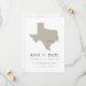 Denna Gör-det-själv-UTSKRIFTLIGA bröllops-spara-datum-mall har en rosa Texas-karta och en kantig handskriven teckensnitt. Använd denna mall för att redigera teckensnitt, teckensnittsfärg och bakgrundsfärg för att matcha dina evenemangsbehov. Flytta hjärtat och destinationen runt för att framhäva din bröllopsplats.