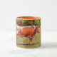 Söt mugg har mitt originalfoto av en vacker och stor Texas Longhorn-ko, som står på en gårdsplan, bearbetad med en illustrerad och målningsfull teknik för en konstgjord stil. Handtaget och innanför kopp är en orange som kompletterar teckningen. Det här är 11 uns mugg, bara den perfekt som är storlek för ditt bryggkaffe eller te - eller till och med hett choklad! Det skulle vara en underbar gåva och man kan lägga in paket med kaffe, tepåsar eller hett choklad. En annan presentidé är att lägga en liten växt i den för att göra extra speciellt för din älskade.