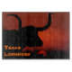 Texas Longhornskärbräda. Med den orange Texas longhornen förse med text lagt över på den Texas longhornen i en älskvärd scharlakansröd solnedgångsilhouette. Ska Texans älskar denna dramatiska svart longhorntjur med enorma krökt horns. Casts ett varmt orange glöd i ditt kök eller på din BBQ. Perfekten för att ladda dina steaks för att glädja och förvåna dina Texanvänner, när du sätter dem på grillfesten, grillar.