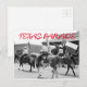 Skicka kort med svart och vit bild av Texas Parad med hästar och flaggor.
