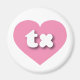 Den här magneten har ett lugn, coola rosa hjärta som innehåller den feta, vita, rundade nedre brev tx i fodral, en lekfull förkortning för Texas, den enda stjärnstaten.
